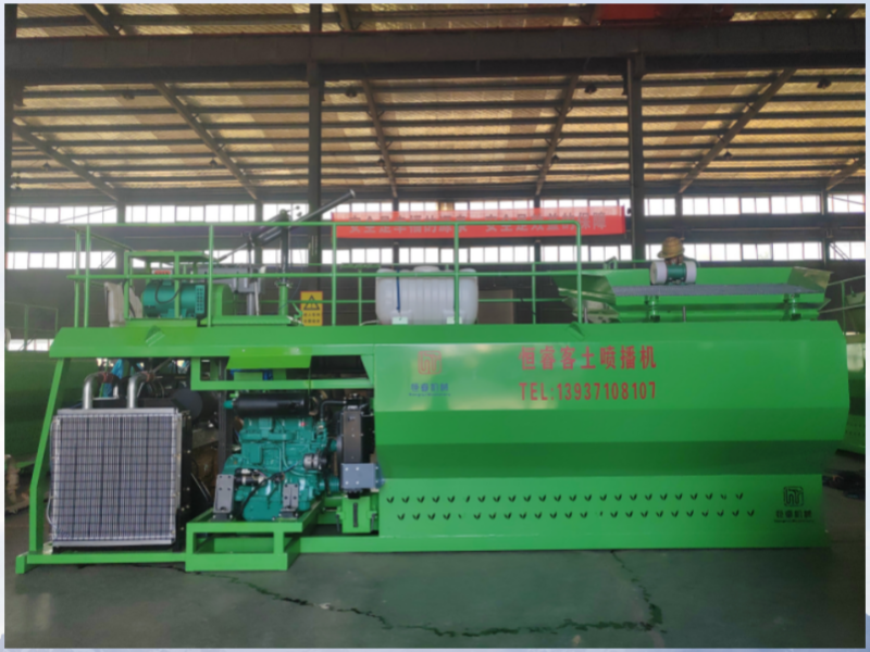 恒睿机械的双动力客土喷播机,性能很强。直喷距离可达 80 到 100 米,550 直径大泵轻松应对各种工况,即使是 5 厘米的石头和草纤维也不会堵泵,让喷播作业更加高效快捷。