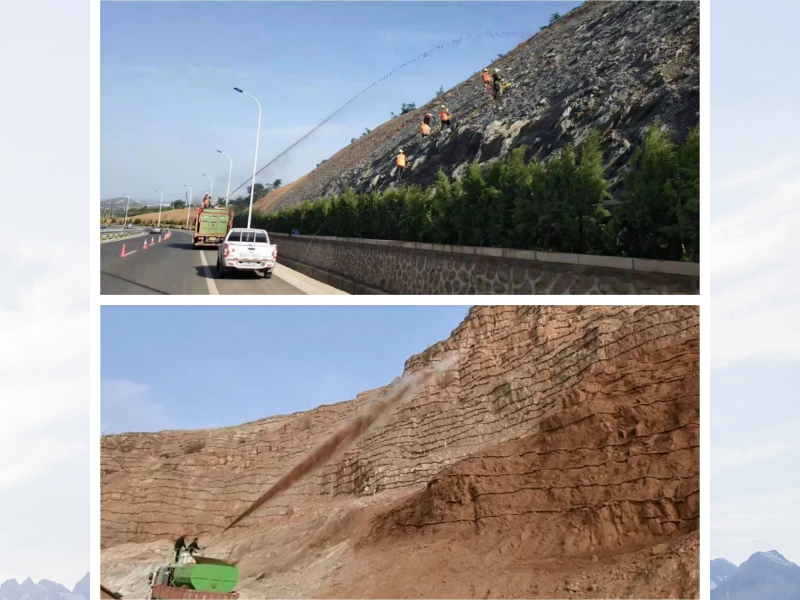 公(铁)路边坡绿化、创面山体复绿、废品填埋场无土覆盖、矿山复绿、荒漠治理、河堤防护、养护洒水、大规模绿地重建等绿化工程。