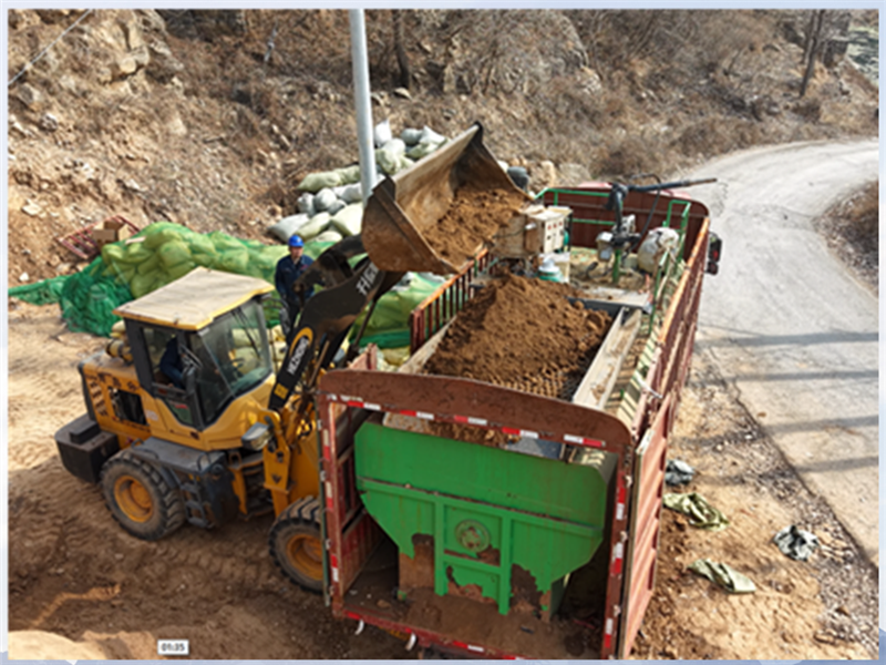 除了智能安全的操作体验,恒睿快速智能遥控团粒喷播机在施工效率和质量上同样表现出色。其配备的二米见方上料口湿土筛分机,支持前后配置,方便铲车从多角度上料,一铲料直接倾倒,抗重力性能强,节省大量上料时间,且倾倒后自动筛土,实现铲车无缝衔接,施工效率显著提升。液压团粒罐配合泵送系统,使团粒剂混合均匀,喷播含量稳定可控,保证了绿化施工的高质量完成。