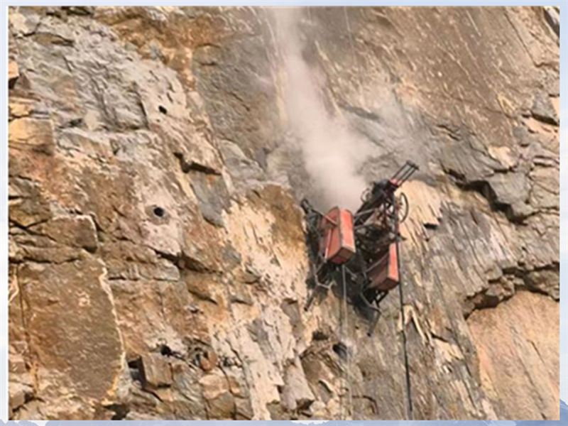 恒睿遥控爬坡钻机采用四轮驱动牵引设计,爬坡能力和越障能力尤为突出,坡面移动速度可达 15 米 / 分钟,在凹凸不平的山坡上也能灵活穿梭,无需起吊设备辅助移动,大大减少了设备调度时间。其凿岩钻孔速度达 1 米 / 分钟,搭配效率高的动力系统,明显提升了施工进度。更重要的是,整机支持全遥控操作,从爬坡、俯仰到打钻,单人即可完成全部流程,无需搭设脚手架,既降低了人工成本,又避免了施工人员在陡坡作业的安全风险。