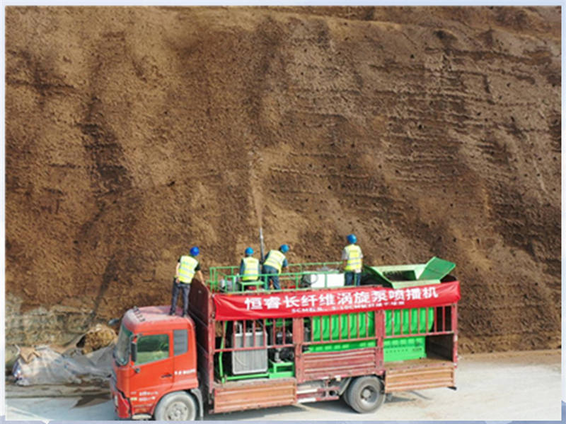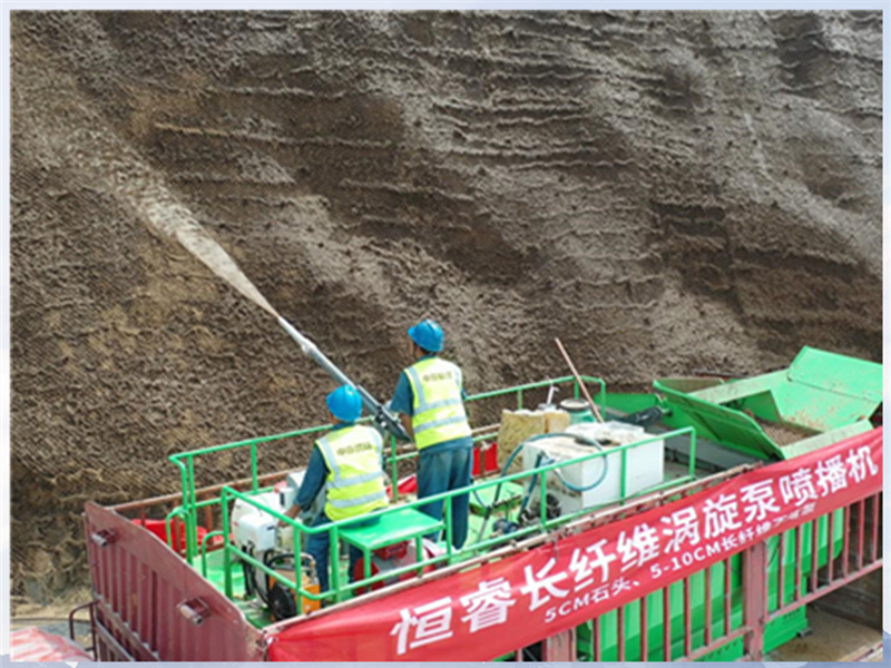 高陡喷砼坡面因结构特殊、水分易流失,常规绿化方式难以让植物稳定扎根,一直是生态修复领域的 “硬骨头”。此次修复工程中,恒睿长纤维喷播机并非孤军奋战,而是与纤维骨架团粒结构技术、集水植生檐绿化技术形成协同合力。纤维骨架团粒结构技术通过构建稳定土壤团粒,提升土壤透气性与保肥能力,为植物根系生长提供支撑;集水植生檐绿化技术则化身 “水分管家”,有效留存自然降水,持续供给植物生长所需水分,而恒睿长纤维喷播机则成为三大技术落地的核心载体,确保各项技术效果提升。