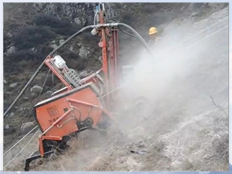 作业前,操作人员需对恒睿遥控爬坡钻机进行全面检查,确认设备遥控信号稳定、钻臂俯仰调节灵活,同时排查坡面30米范围内无浮石、障碍物,确保工况符合肉眼可视、无需换钻杆的作业要求。作业过程中,依托恒睿遥控爬坡钻机的全地形自适应四轮驱动性能,设备可稳定停靠坡面,90°俯仰可调的钻臂精确把控钻孔角度,操作人员通过遥控终端实时监控钻孔进度,无需现场值守,既保障了人员安全,又提升了作业便捷度。