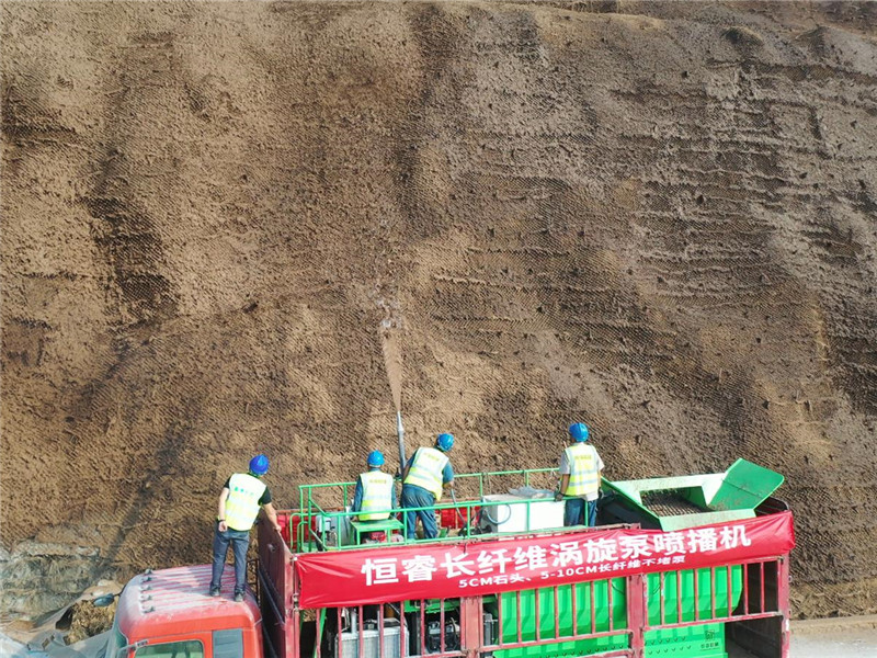 施工期间,恒睿喷播机凭借稳定的性能,将灌木种子、营养基质、保水剂等材料喷射至喷砼坡面,确保基质与坡面紧密贴合,为种子萌发提供充足的营养与水分支撑,从源头保障植被成活率。相较于传统喷播设备,恒睿喷播机喷射压力均匀、覆盖范围广泛,有效解决了喷砼坡面基质附着难、种子分布不均的问题,为植被长期生长奠定了坚实基础。