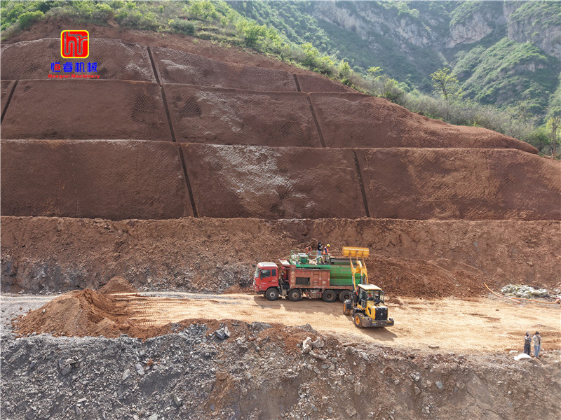 恒睿遥控智能喷播机以远程操控、高效率适配、经济实用的核心优势,成为荥阳破损山体生态修复工程的主要设备,助力当地山体复绿与工地绿化提质增效,为荥阳生态修复注入科技动能。