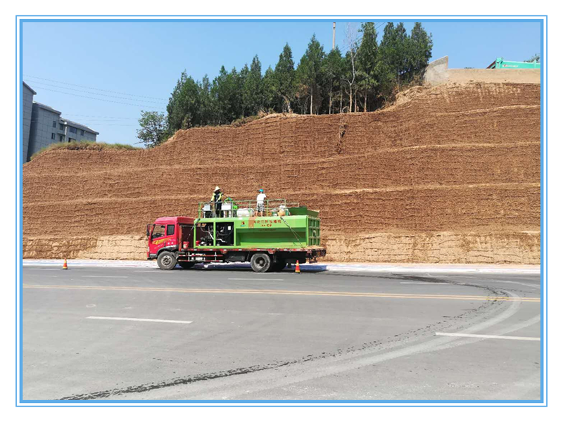 2.高次团粒喷播机可实现直喷高度45-50米,引管子120-300米,效率高,直喷情况下可实现喷播面积2000平方以上(5cm),同步性能好,能够将液压系统驱动高分子的材料运输到系统中,使其能够按照功效的比例严格的同步运输流量和泥浆泵流量。