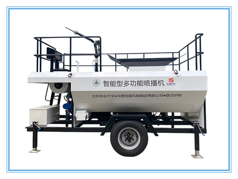恒睿机械智能型多功能喷播机”由机架、罐体、动力系统、搅拌系统、传输系统、高次团粒辅助系统、喷枪、操作箱等组成。它是应用于绿化的专用设备,通过本设备将种植土、绿化用草籽、保水剂、粘合剂、肥料等,在搅拌容器中与水混合成胶状的混合浆液,用压力泵将其喷播于待播坡面上。由于混合浆液中含有保水材料、粘和材料、各种养分,在保障了植物生长所需的水和其它营养物质来源的同时有效防止雨水冲刷对喷播材料的破坏,故而植物能够健康、迅速地成长。